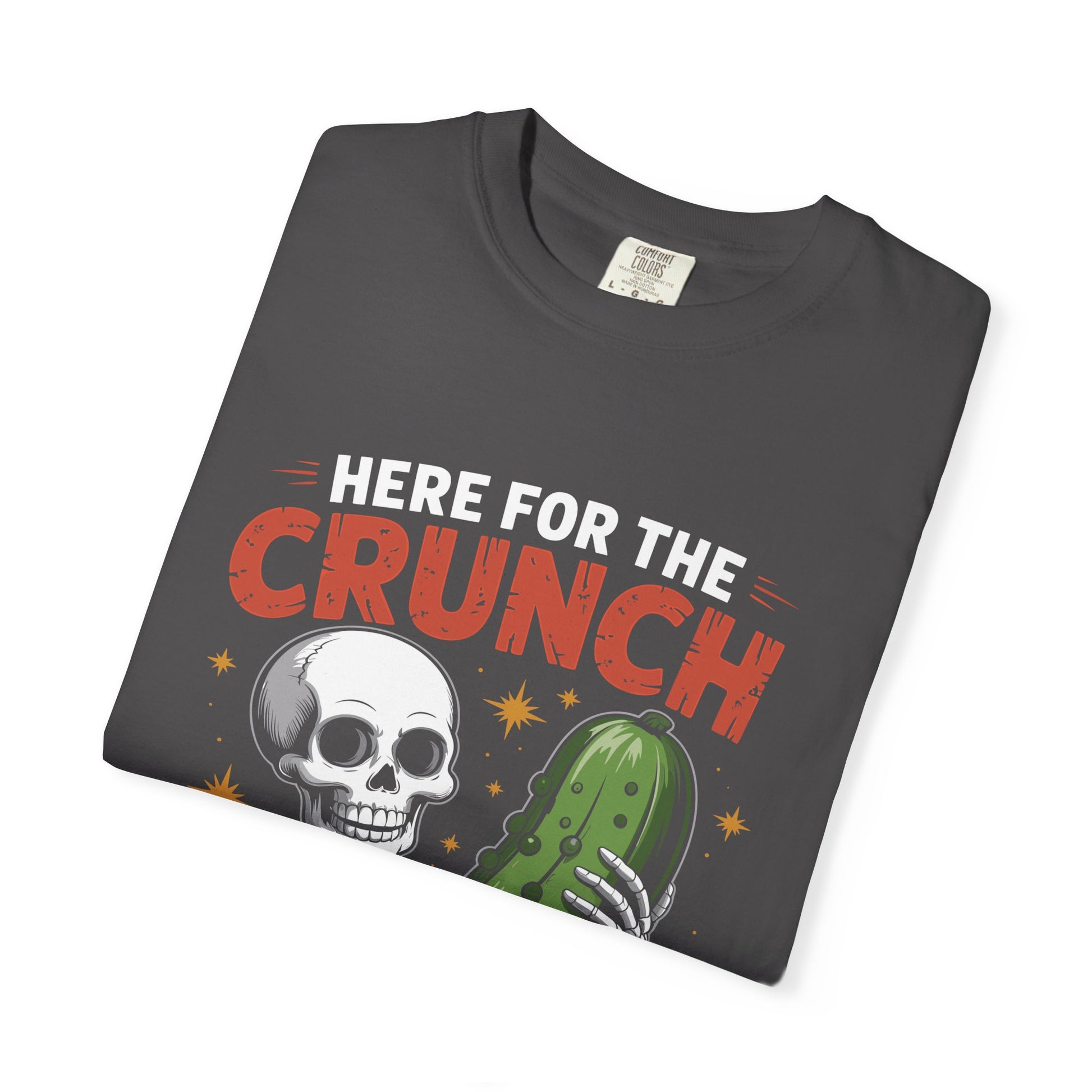 Funny Skeleton Pickle T-Shirt | 'Here For The Crunch' Snacking Meme Tee | Comfort Colors® 1717