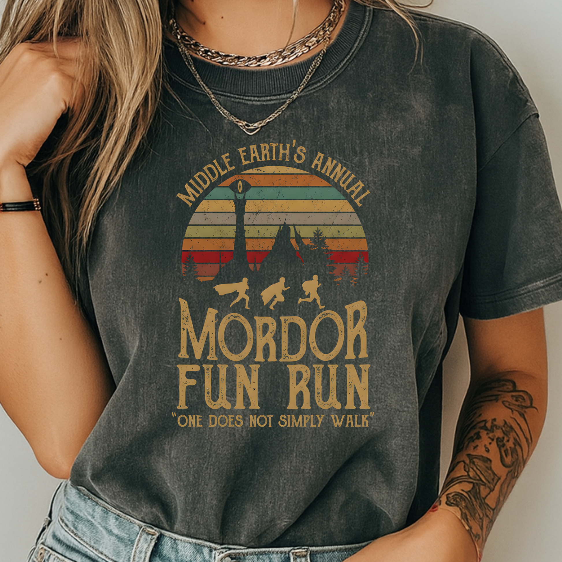 Mordor Fun Run Vintage T-Shirt - "One Does Not Simply Walk" Funny Fantasy Running Tee