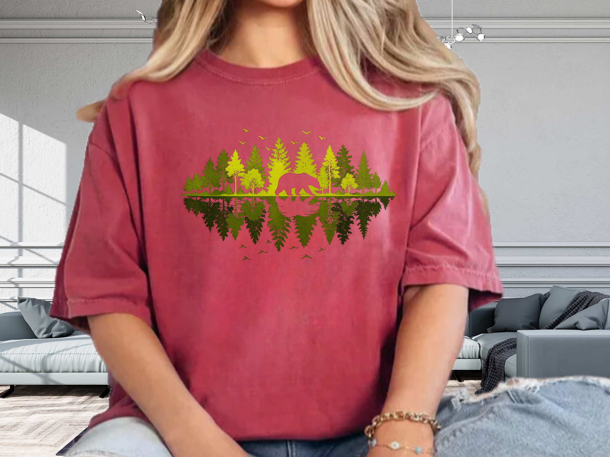 Bear Forest Reflection T-Shirt Nature Lover Graphic Comfort Colors 1717 Hiking Tee