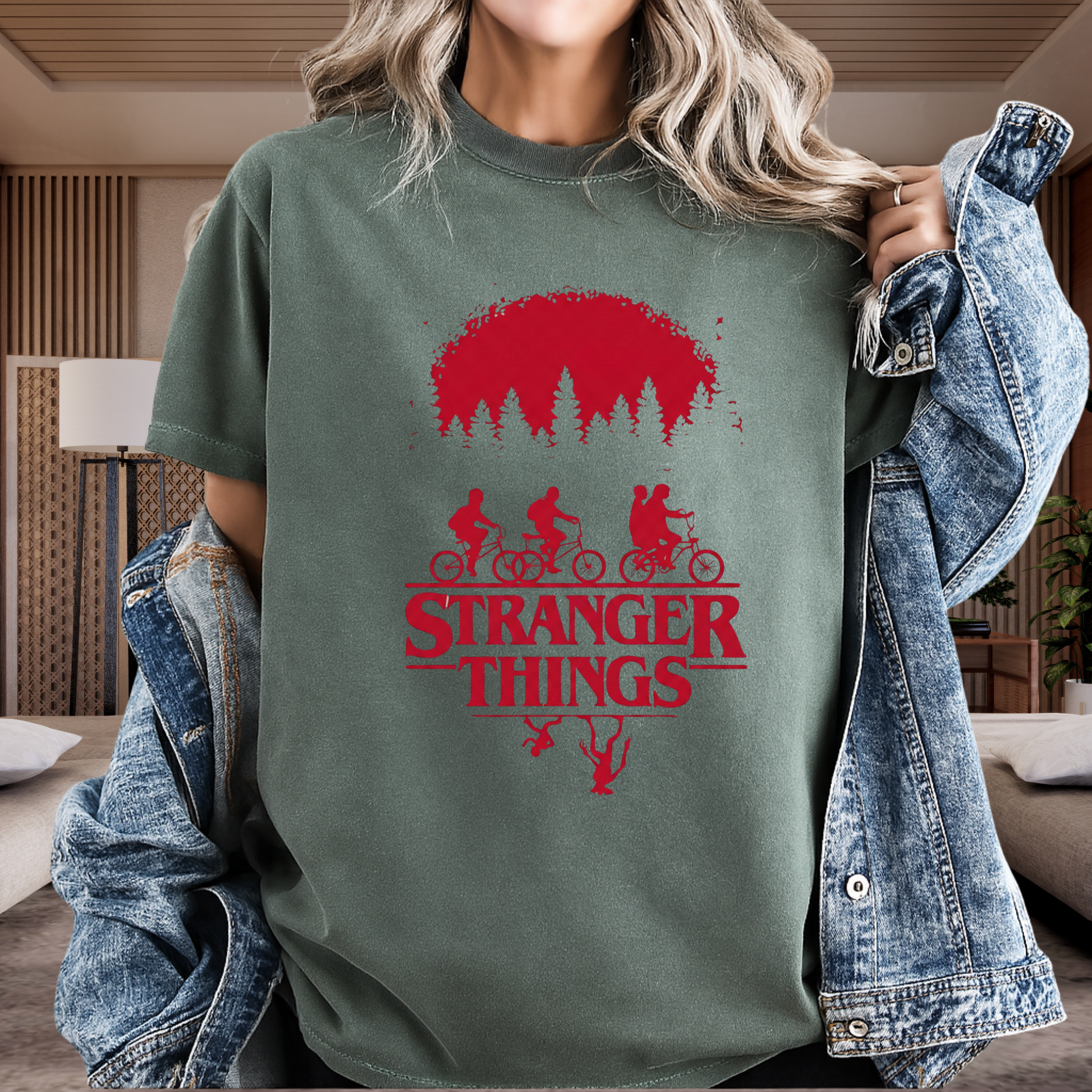 The Vibe is pure 80s nostalgia mixed with thrilling mystery. It pays homage to the duality of the show—friendship and danger, the real world and the supernatural. Whether you are binge-watching the latest season, attending a comic convention, or just love a cool graphic tee, this shirt is the ultimate statement piece for any fan of the Upside Down.