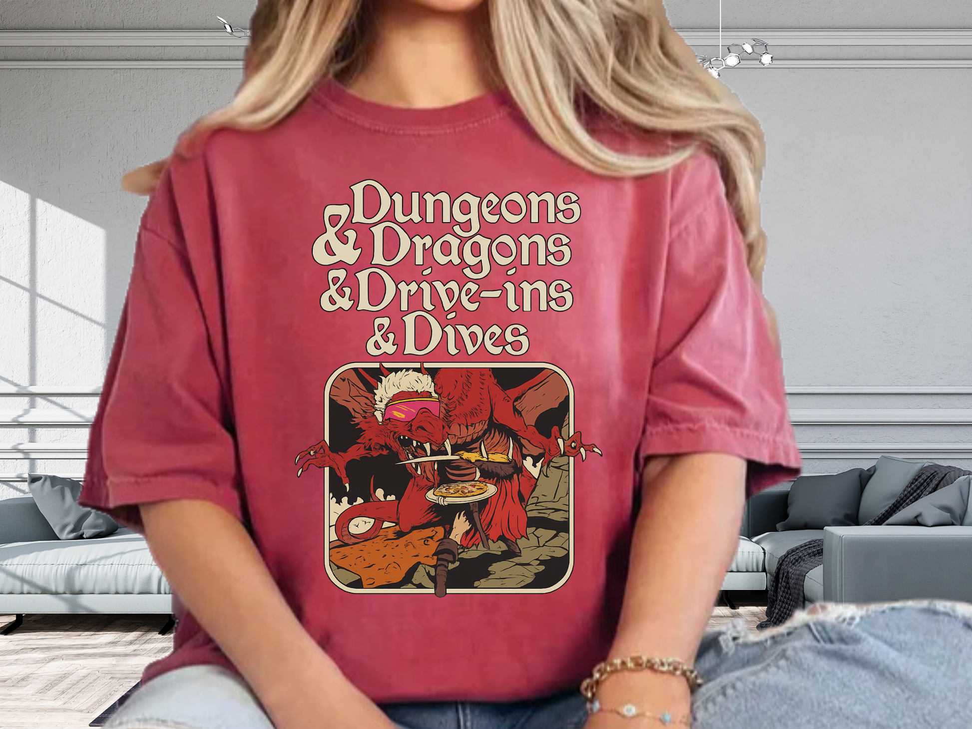 Dungeons and Dragons and Drive Ins and Dives T-Shirt Funny Guy Fieri RPG Mashup Graphic Comfort Colors 1717 Tee