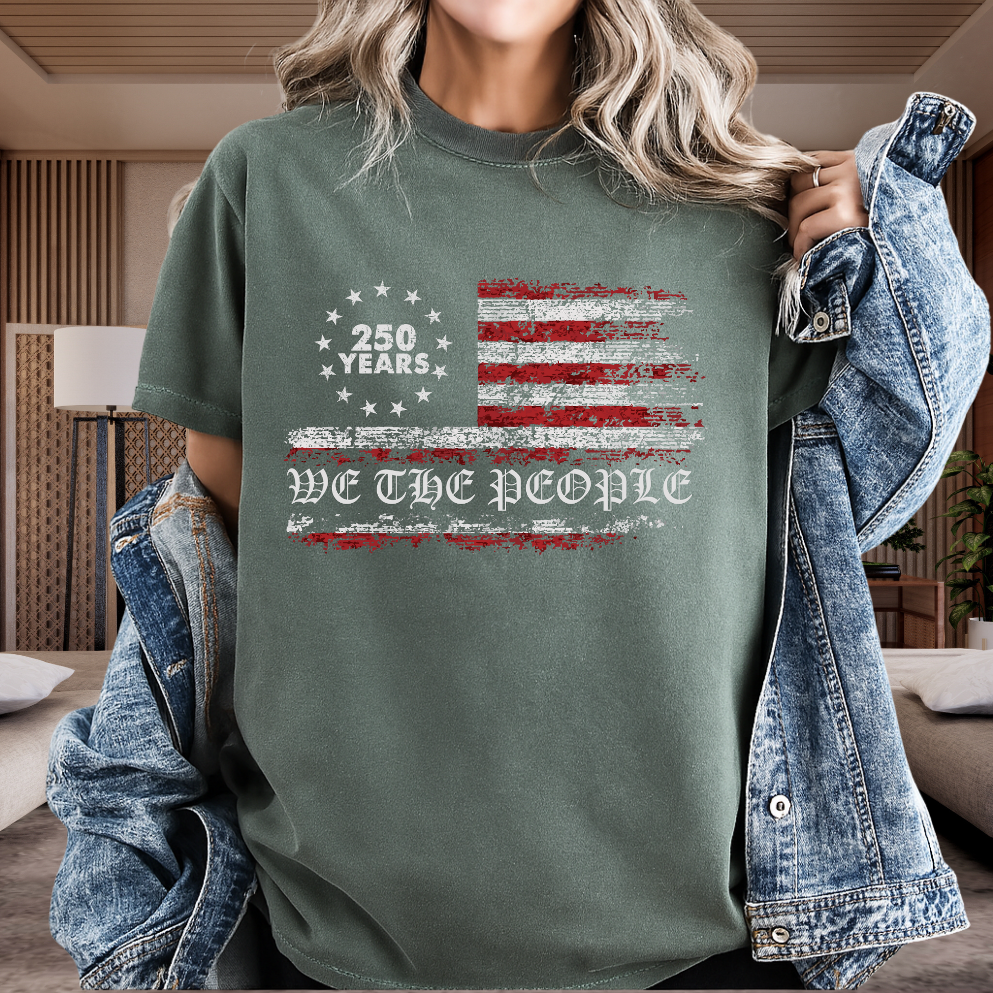 250 Years We The People American Flag T-Shirt USA Semiquincentennial Comfort Colors 1717 Patriotic Tee